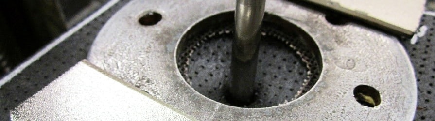 Prüfung des statischen Durchdrückverhaltens (CBR-Versuch): Die Geotextilie wird zwischen zwei Stahlringen eingespannt. Der Stempel dringt mit konstanter Geschwindigkeit in die Mitte der Geotextilie hinein. Aufgezeichnet wird die Durchdrückkraft in kN beim Zerreißen. Je höher dieser Wert, desto reißfester ist die Geotextilie.